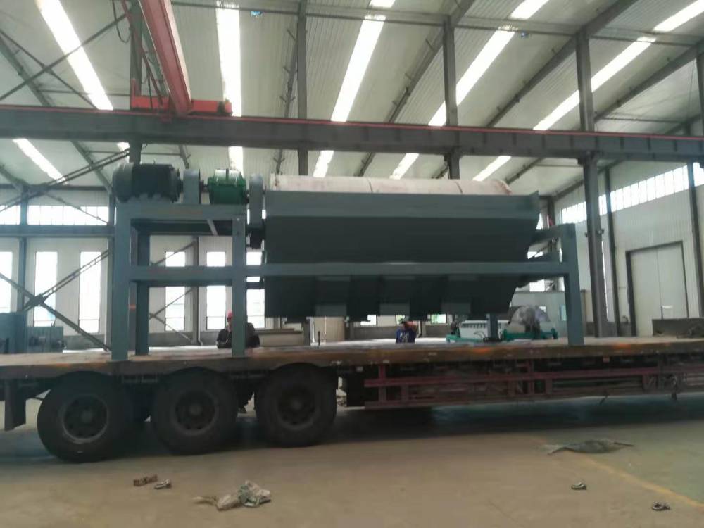 CTS ( N、B )系列永磁筒式磁选机适用于湿式选别细颗粒的强磁性矿物,或者除去非磁性矿 物中混杂的强磁性矿物。本机可以连续给矿和排矿,磁场深度大,工作间隙大,具有较高的 处理能力。其原理是当矿浆进入磁区时,其中强磁性矿物被附在圆筒表面,弱磁性和非磁性矿物被甩掉 排出,而吸附在圆筒表面上的强磁性矿物随圆筒旋转,被带出磁场区,用冲洗水冲入精矿糟 中,完成分选作业。同一圆筒可配三种槽体,即顺流槽(CTS )、逆流槽(CTN )和半逆流槽工(CTB ),以适应不 同的选别要求。顺流槽适用于矿石料度为6-0mm的粗选和精矿。逆流槽适用于矿石粒度为0.6-0mm的粗选和扫选,以及选灯煤工业重介质回收。半逆流槽适用于矿石粒度为0.5-0mm的粗选和精矿,尤其适用于粒度为0.15-0mm矿物的精矿。半逆流磁选机 干式磁选机 平板磁选机 省时省力半逆流磁选机 干式磁选机 平板磁选机 省时省力