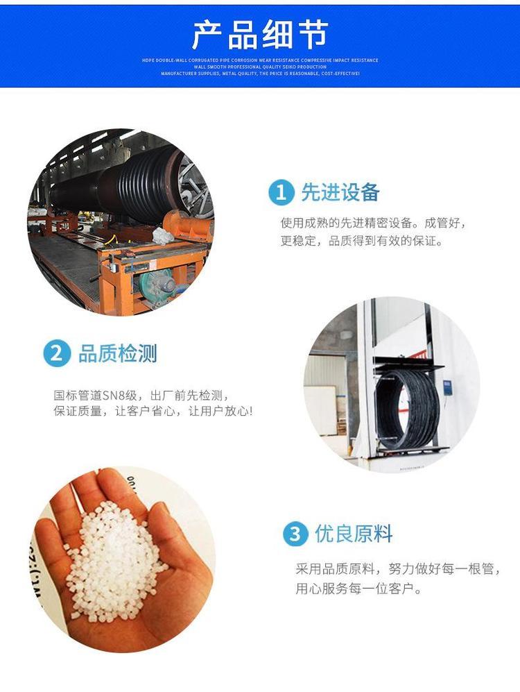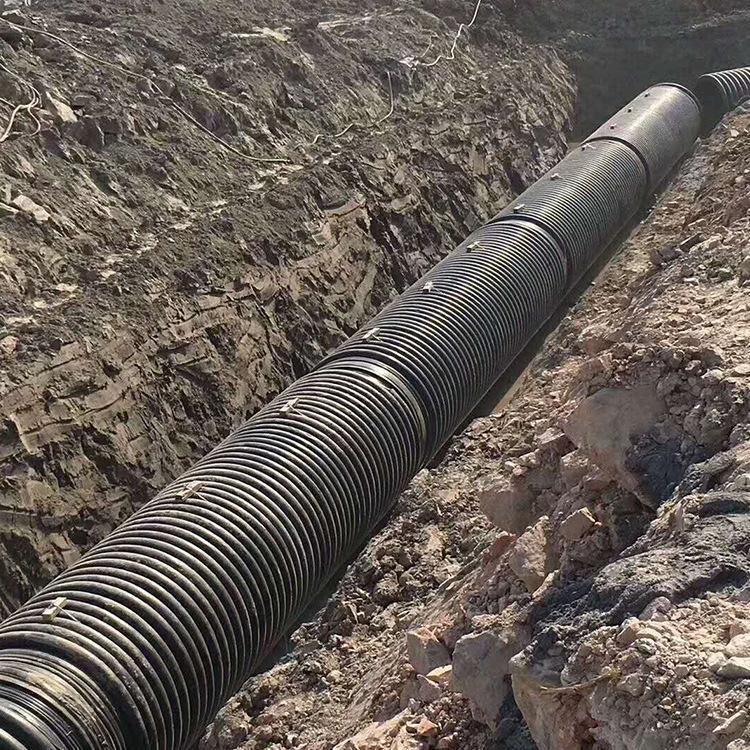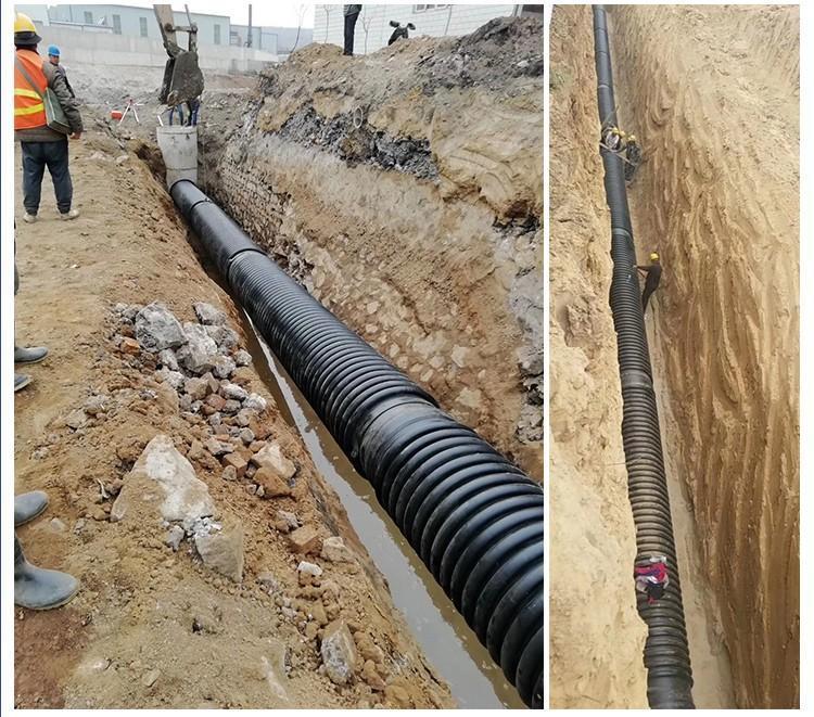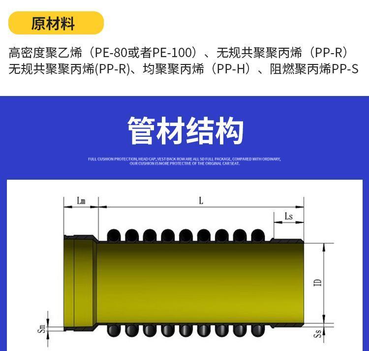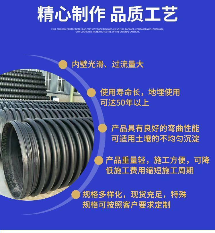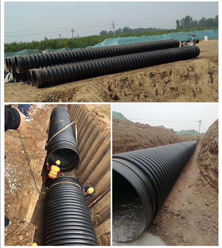 克拉管既热态缠绕成型高密度聚乙烯缠绕结构壁管一、HDPE缠绕结构壁管简介HDPE缠绕结构壁管是以高密度聚乙烯树脂为主要原材料,采用热态缠绕杨型工艺,以聚丙烯(PP)单壁波纹管为支撑结构制成具有较高抗外压能力的特殊结构壁管材。所生产的产品可分为PR、OP、SQ、VW三种系列,其中:PR、OP-主要用做埋地排水管道,SQ-主要用于制造容器或窨井,VW-主要用于三通、弯头、二次加工成型的管件,产品中应用PR系列,该产品内表面光滑、外部为异型增强结构,管材标准长度为6米,管内径范围为DN300-DN4000,产品指标 均达到GB/T 19472. 2-2004 B型结构壁管标准及PREN-13476欧洲标准要求。