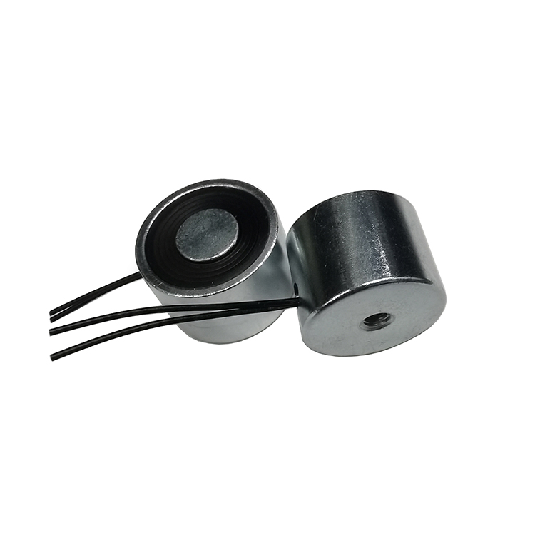 漆包线绕在线轴下,当对2015吸盘电磁铁加电时,磁场激发部分产生磁力,磁化磁场传递部分使其吸合面产生磁力从而吸起工件,当磁场激发部分断电时磁场传递部分无法产生磁力从耐工件脱离。