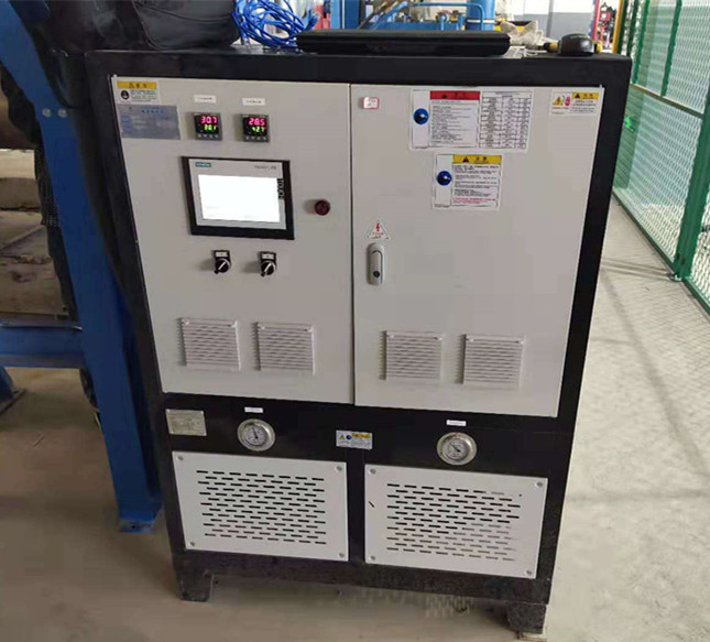 在控制系统中导热油经过齿轮泵送入整个系统中,当设定好的磁性翻柱式液位控制器到达液位时,齿轮泵自动关闭,这时启动循环泵和电加热器开始加热,当出口油温达到设定值时,进入用户系统循环,经设备使用后的油再次进入装置加热,周而复始,循环运转,即为导热油的工作状态。