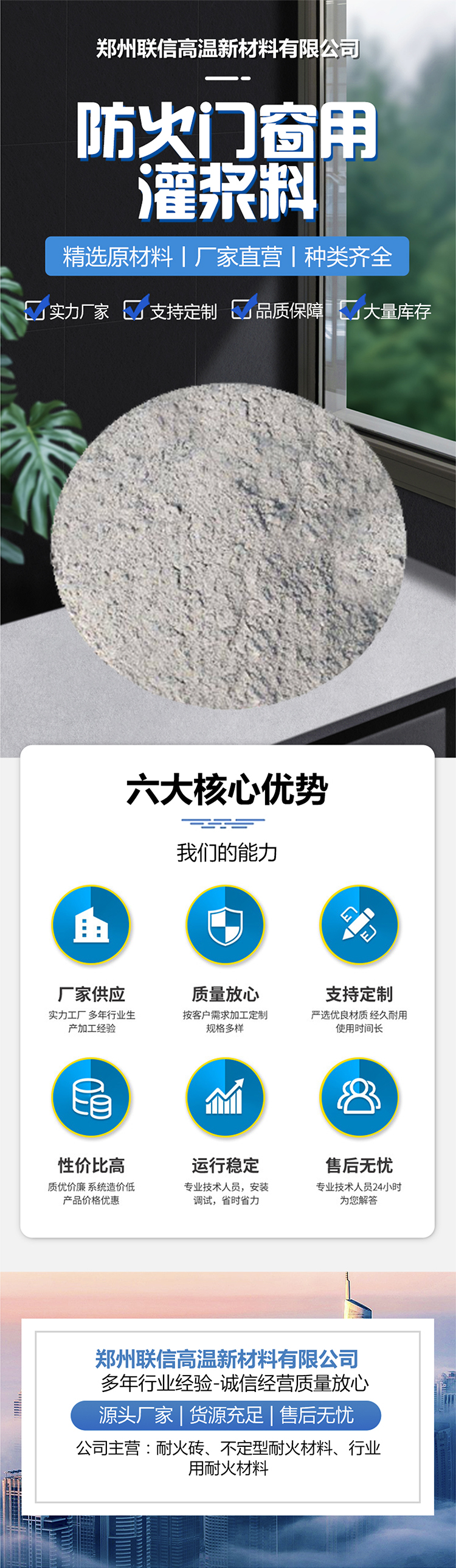 郑州联信高温新材料有限公司发布的防火门窗用灌浆料图集库