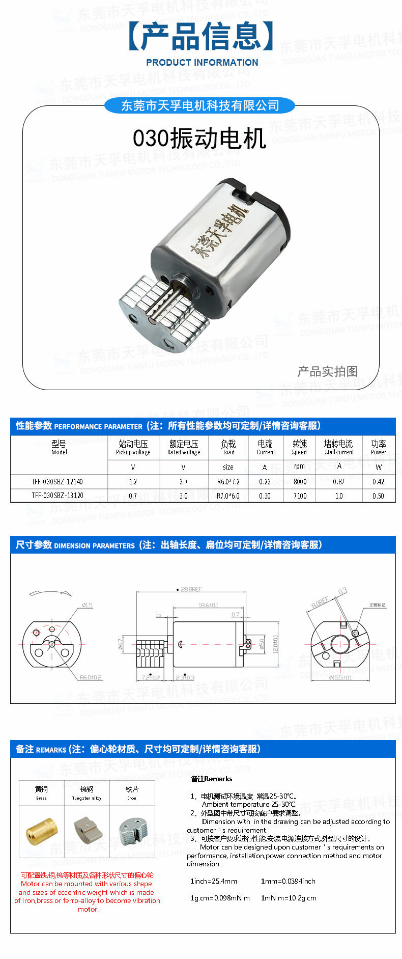 广东天孚电机科技有限公司发布的030震动马达 微型有刷直流振动电机图集库