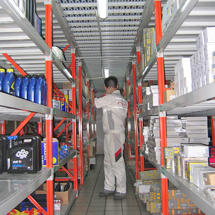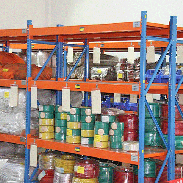 中型搁板式货架:货架采用扣接式结构,拆装方便,层间距可依据货物高度以每50mm为单位上下调节,其承载范围可达300-500kg/层。层板可以选用钢板、木板、中密板等材料。此种货架高度适宜,方便人工存取货物,是中小型仓库的理想仓储产品。