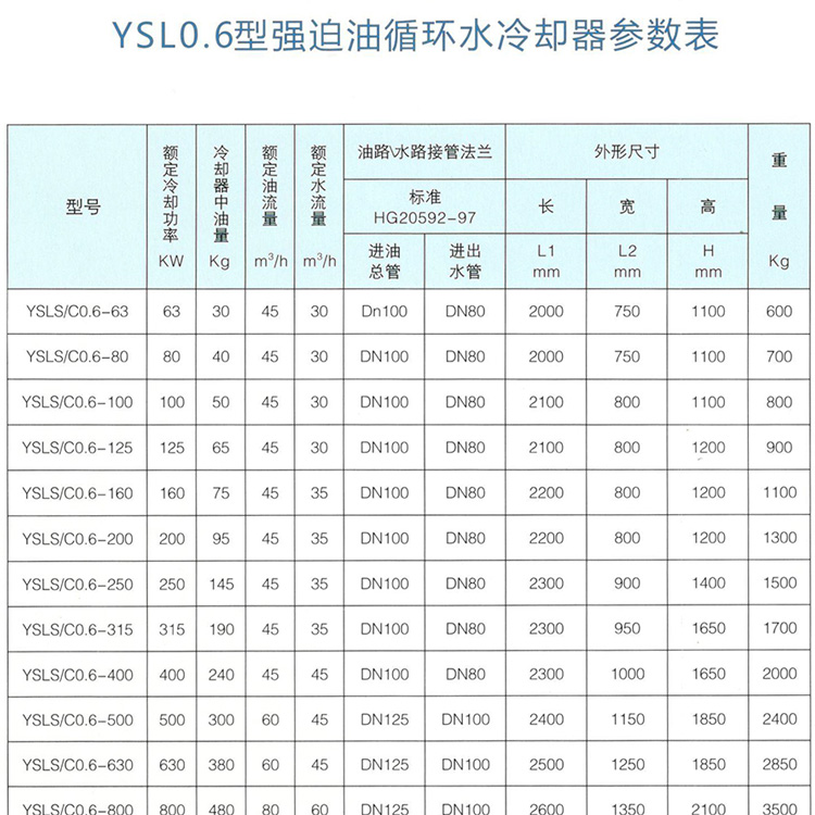 YSL0.6型变压器用强冷却器型号参数
