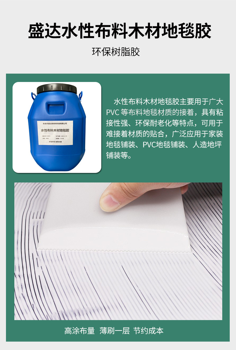 东莞市盛达新材料科技有限公司发布的水性布料木材地毯胶高粘性pvc地板复合胶水环保无毒防霉树脂胶图集库