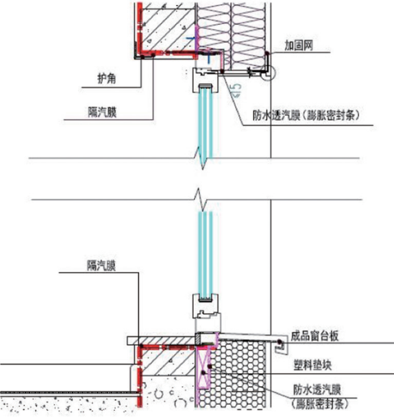 图1 气密层标注示意 图2 门窗设计节点