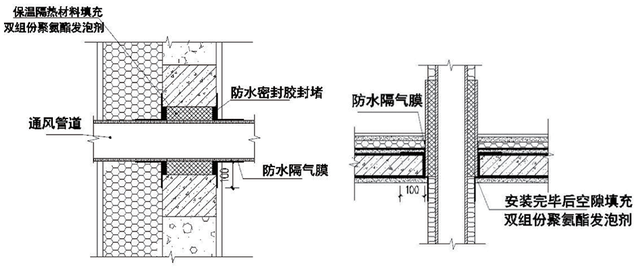 为保证建筑围护结构气密层的整体性,在设计时,对穿透外墙、屋面、地板管线或预埋管均应采取气密性处理措施,如图3。
