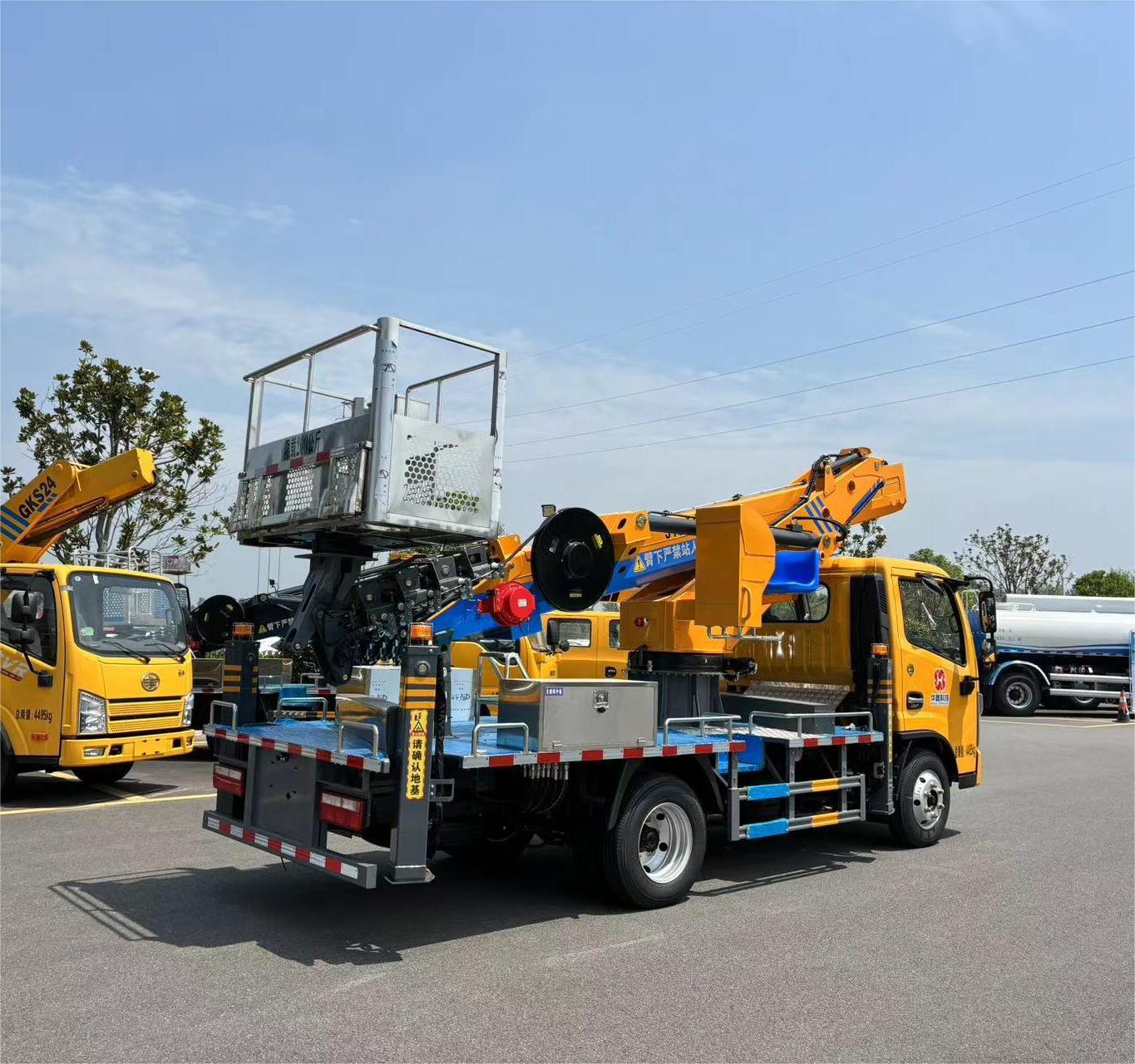 上装配置:前V后V双节液压支腿,后支腿下沉式设计,七节18边型宝钢大臂,钢丝绳传动,双油缸举升,21寸回转支撑,标配1.6米带翻转板吊篮,三位一体操作模式,杜曼电控系统,百米无线遥控,作业高度33米,作业幅度25米,整车烤漆工艺,耐腐蚀性更强!