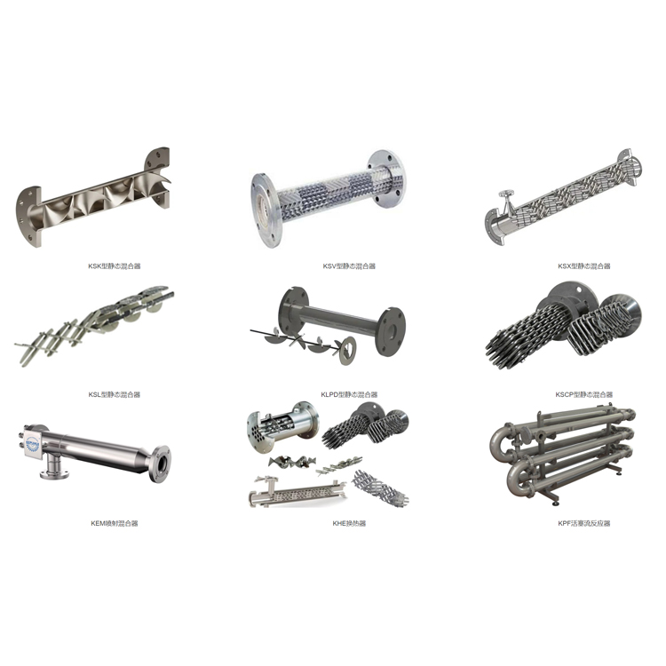 静态混合器是安装在管道内部具有适当形状、长度,当流体流过时可以实现良好的混合、反应、分散效果的静态混合设备。流体的流动通过泵实现。除了在石油炼油、化工行业被广泛应用外,在食品、矿冶、塑料挤出和环保等部门也被广泛应用。静态混合器是一种没有运动部件的管道高效混合设备,与搅拌器、胶体磨、均质器等传统的混合设备相比,具有流程简单(管道连接),结构紧凑(类似一部分管道)、能耗低(压力损失小)、免维护(没有运动部件)、干净卫生(运行时隔绝空气)、生产量大(可以连续运行)、混合性能良好、投资小等优点。凡涉及到液一液,液一气,液一固,气一气的混合,乳化,中和,吸收,萃取,反应和强化传热等过程,都可以替代传统的相关设备。
