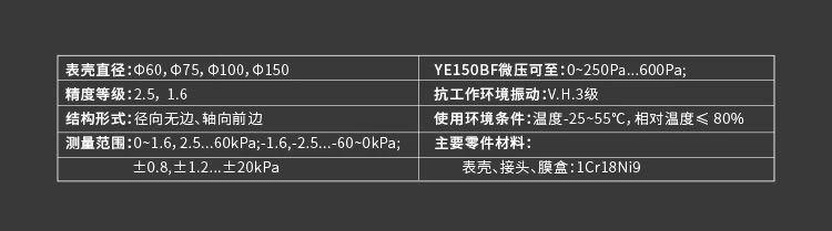 | 类型 | 膜盒/微压表 | |