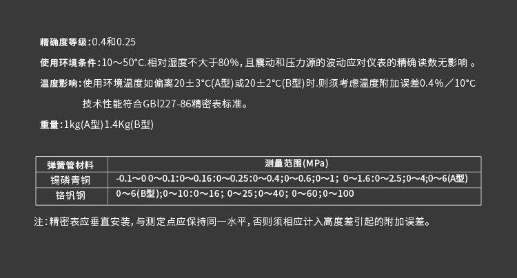 | 类型 | 精密压力表 | |