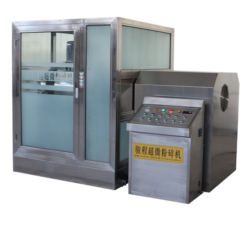 骏程低温超细打粉机又称低温超微粉碎机或超细粉碎机,超微粉碎技术能够增加中药的溶出率和生物利用度、减少中药的用量、保留中药的挥发性活性成分、增强药理作用以及提高比表面积、改善颗粒的均匀性等。可使药物粒子达到10 μm以下,可明显增加内服制剂在体内的溶解吸收程度,并有可能用较小剂量达到原方的疗效。应用在冲剂、胶囊剂、片剂、膜剂等固体制剂中,能改善溶解度、崩解度、吸收率、附着力及生物利用度。外用散剂可增加药物的分散性,有利于涂布、附着,使有效成分更易于透皮吸收,并可减少对皮肤的刺激性。