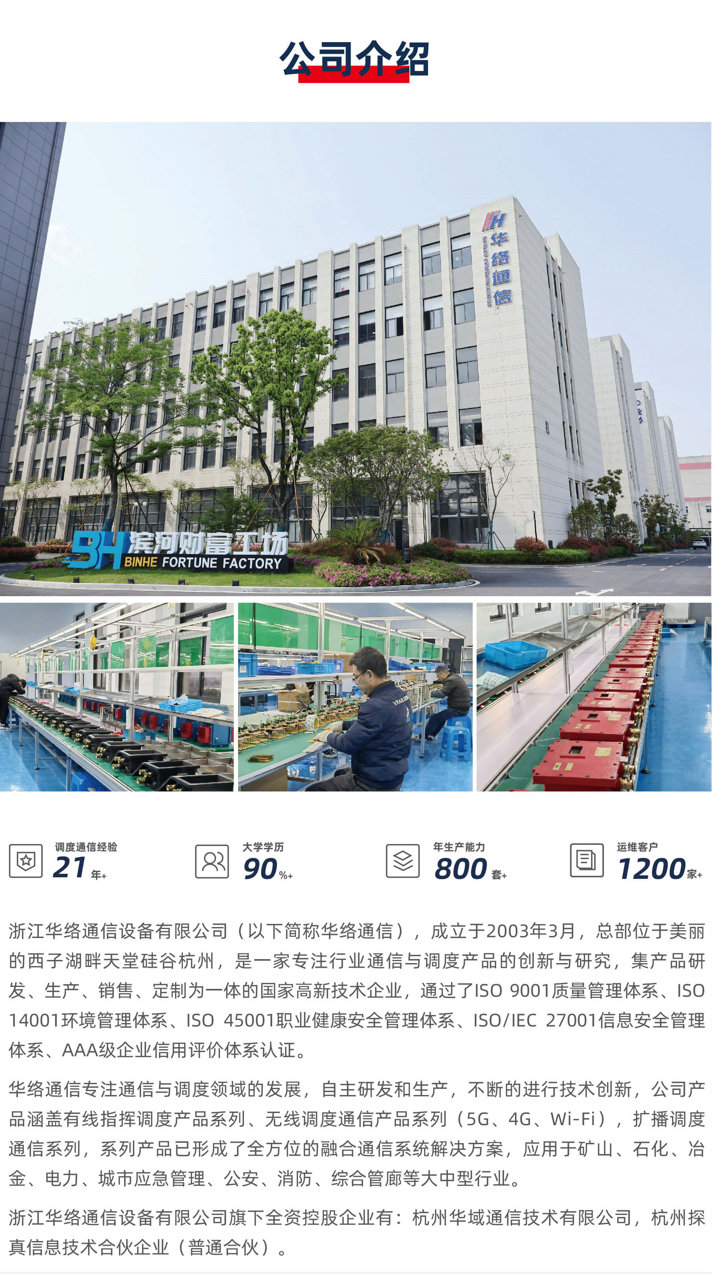 浙江华络通信设备有限公司是一家专注行业通信与调度产品的创新与研究,集产品研发、生产、销售、定制为一体的国家高新技术企业,防爆wifi安全生产,主营产品:程控调度、软交换调度、融合调度、无线5G通信、无线4G通信、无线WiFi通信、无线MESH通信、广播通信、UWB定位等。防爆wifi服务热线。