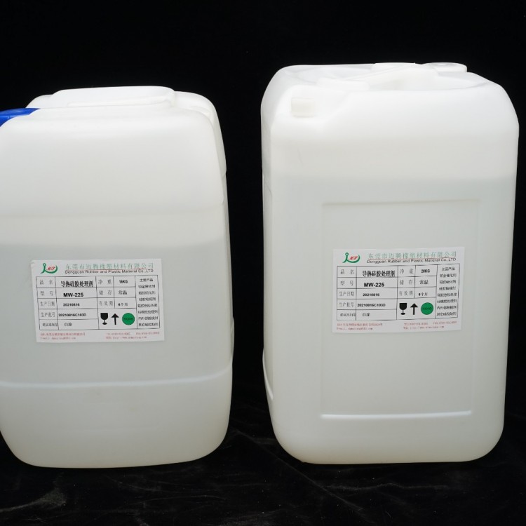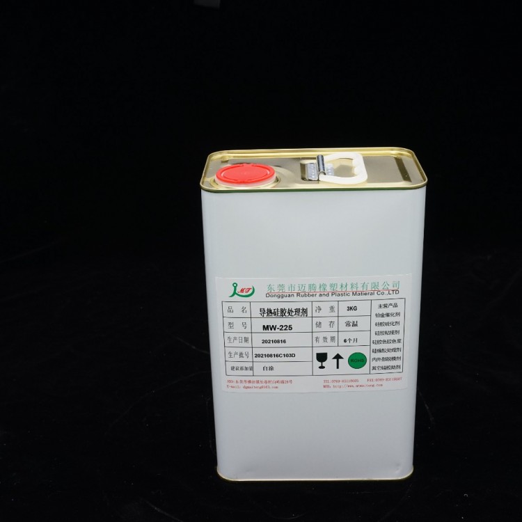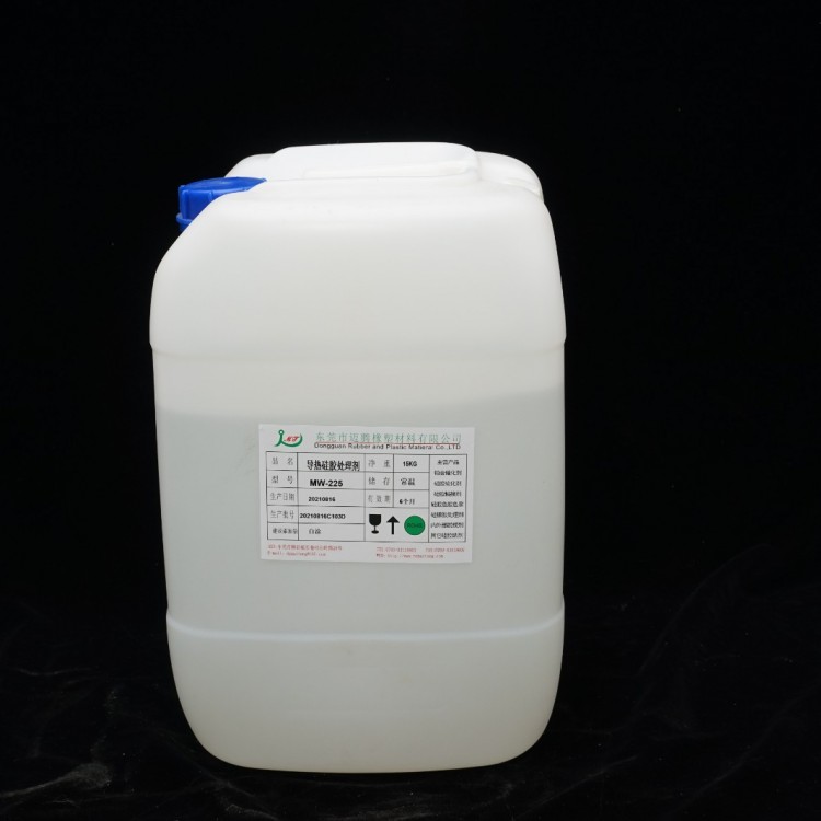 导热硅胶处理剂MW-225广泛用于导热硅胶自粘脚垫、导热硅胶片、导热硅胶条等饰品与多种3M双面胶、不干胶的粘贴。