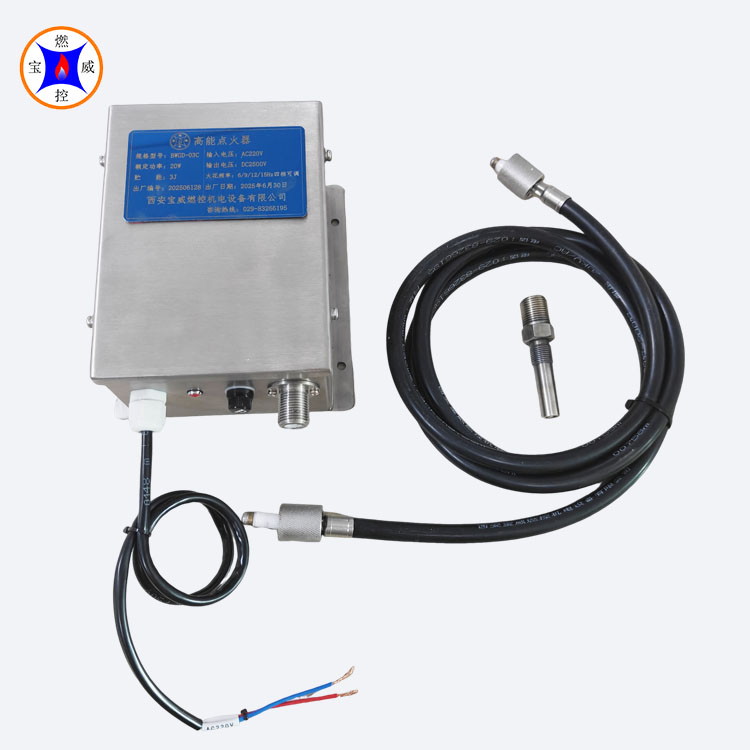 BWGD-03高能点火器,用于工业燃烧器的自动点火,适用于吹灰器使用。该产品体积小,能量大,发火端耐高温,抗积炭,抗结焦,具有自净能力,点火可靠性高,其性能优于点火变压器,点火棒安装方便,不需调整点火电极放电距离。