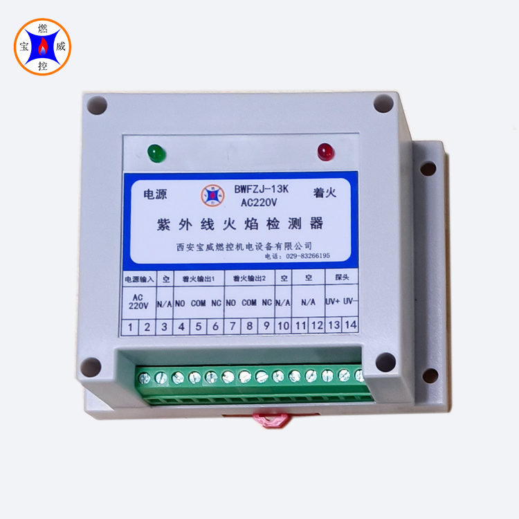BWFZJ-13K DC24V/AC220V紫外线火焰检测器 是根据石化、治金、煤化工、陶瓷等行业的需要,专门设计、开发的一种火焰检测器。该产品,具有简单、可靠,使用维护方便等特点,适用于各种燃气、燃油窑炉及火炬的火焰检测。