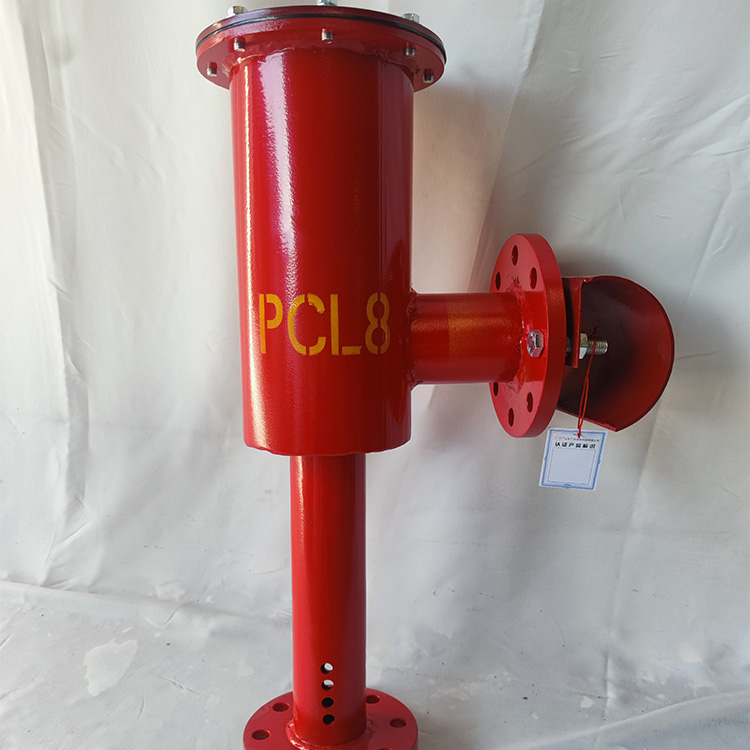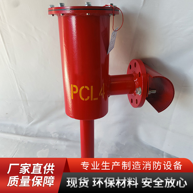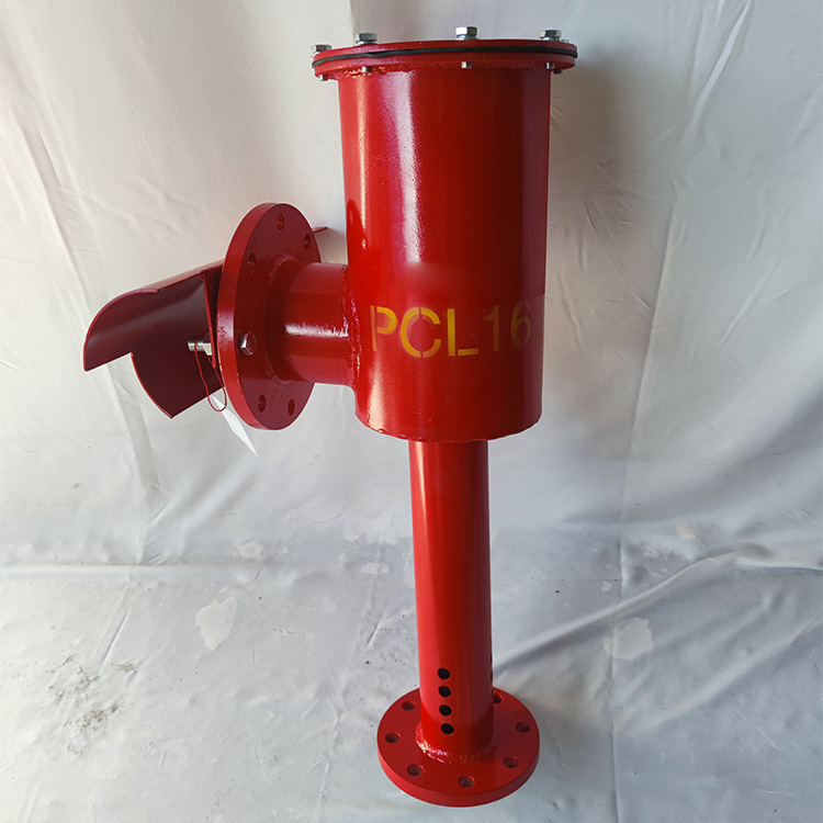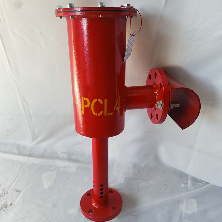 工作原理:当泡沫消防车或固定消防泵供给的泡沫混合液流,经输送管道通过产生器时,吸入大量的空气、产生泡沫,通过喷射管道,并经过挡板的阻挡后,沿罐壁而下,在油面形成一层泡沫膜,从而隔断空气,达到灭火效果。