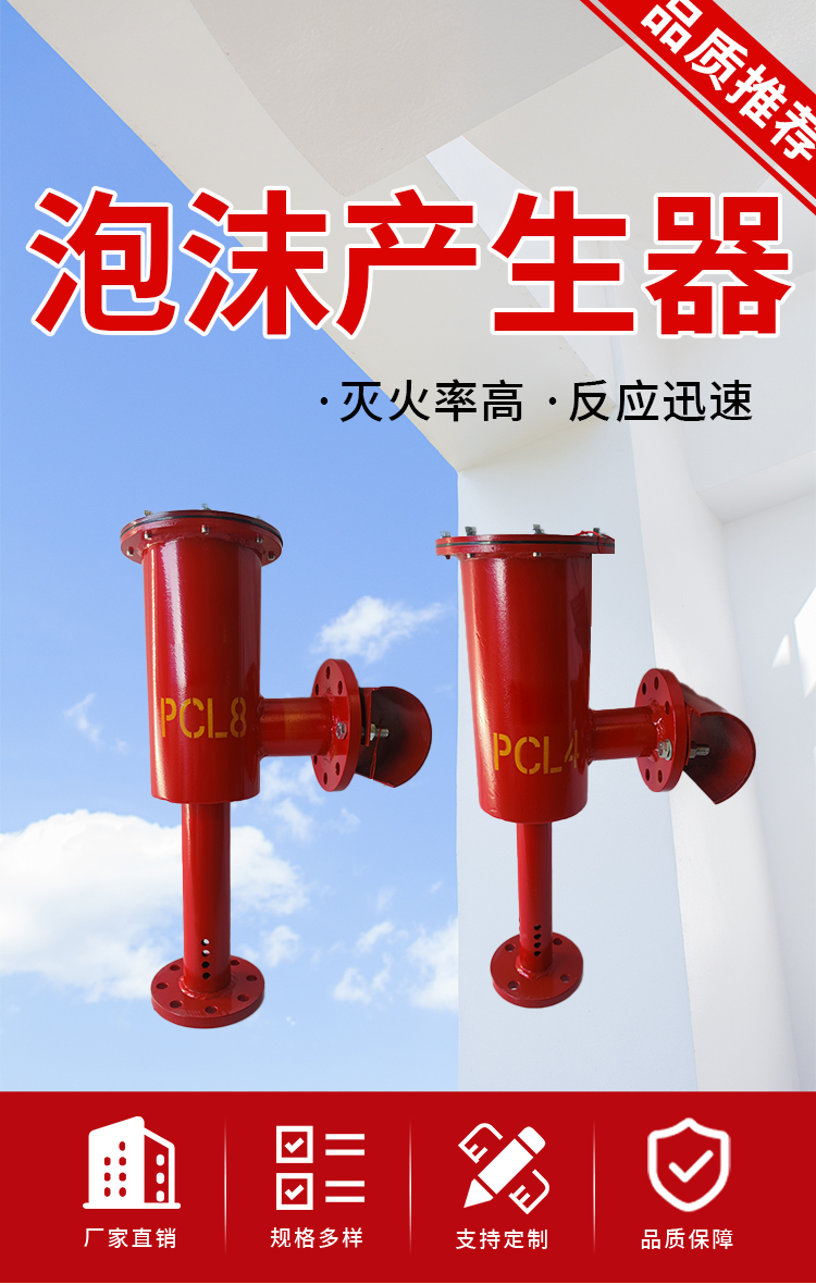 当泡沫消防车或固定消防泵供给的泡沫混合液流,经输送管道通过产生器时,吸入大量空气产生泡沫,将泡沫喷入燃烧液面上形成泡沫层或一层膜,是低倍数液上喷射泡沫灭火系统的关键设备。