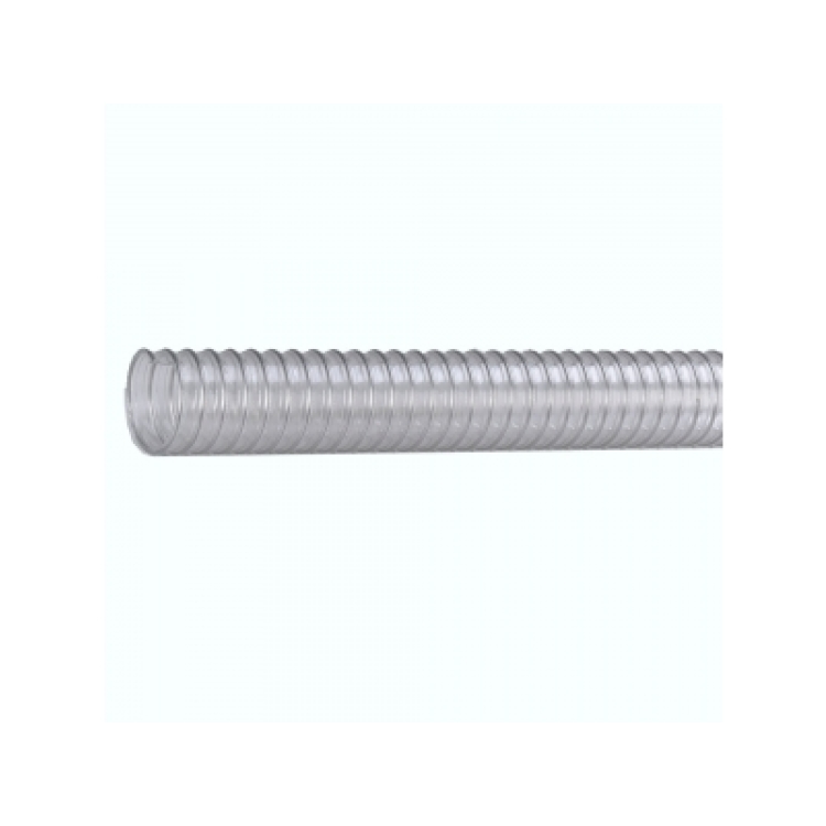 抗静电聚醚型聚氨酯材质(R≦109Ω),不锈钢丝螺旋加强。非螺旋处壁厚恒定为0.9毫米。内壁平滑机械特性及真空性能柔韧,易弯曲,抗菌, 抗水解,抗老化,耐臭氧,耐紫外线,耐候性、耐多种化学品。不含卤素,不含邻苯二甲酸盐。软管两端螺旋钢丝接地可排静电。