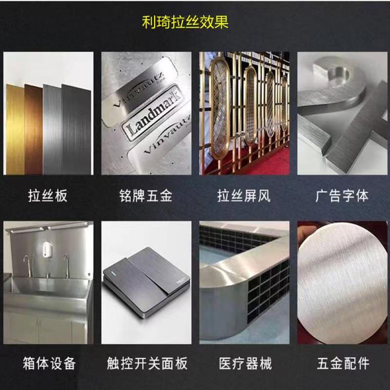 设备特点:效率高,品质稳定,操作简单,使用时间长,丝纹清晰明显,可安装砂带、尼龙轮等耗材。