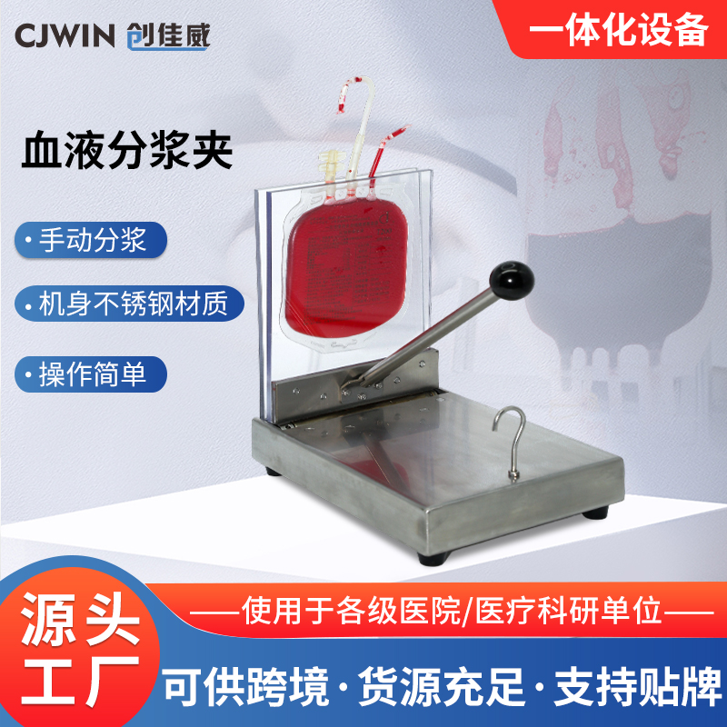 采血袋经离心后,血浆与红细胞分为了上下两层,分浆夹通过物理挤压将上层血浆缓慢挤出,同时避免红细胞混入。