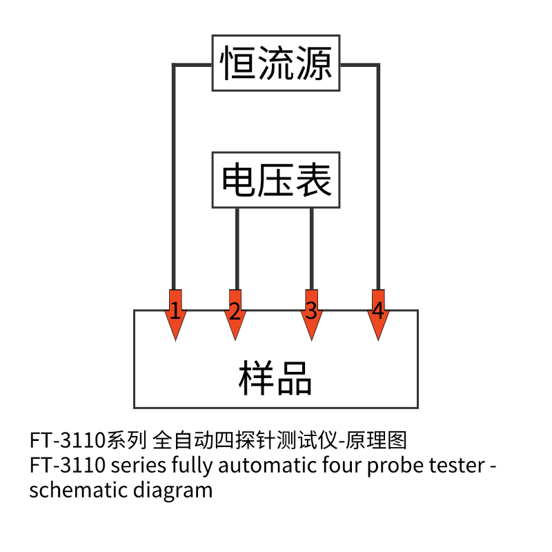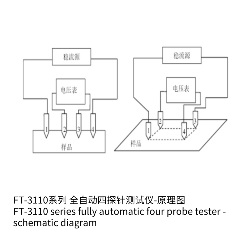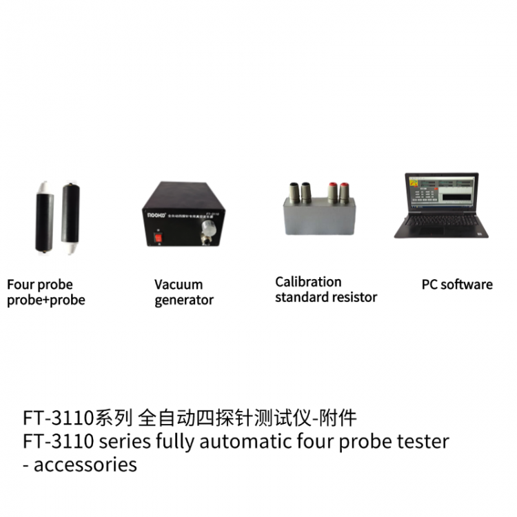 四点探针标准测试方法,采用步进系统自动控制探头与样品接触,减少人为因素对测试结果的影响;参照A.S.T.M 标准;测量方块电阻、电阻率、电导率数据、PC软件采集和数据处理实现自动点测模式或手动点测模式,同一位置的重复测试或多点的面电阻测量,报表输出数据统计分析;提供标准校准电阻件;自动正/负电流输出,自动正/负电压测量