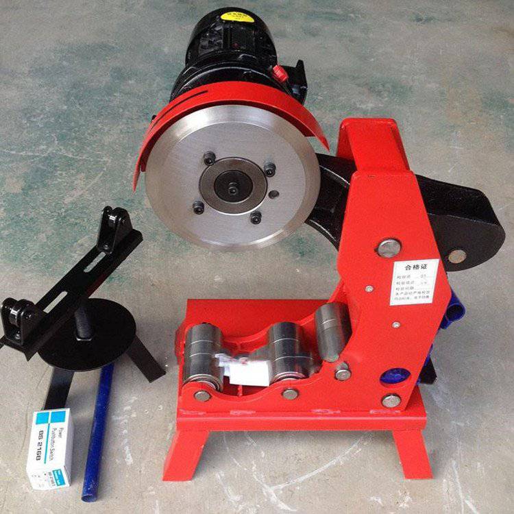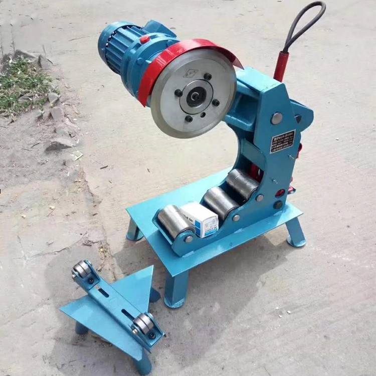 切管机用于普通钢管镀锌管,衬塑管,螺旋管和无缝钢管的切割,用于与消防,建筑,给水矿山,煤矿等的管道施工和给水处理切管机使用方法和注意事项:把切管机放置在水平的问题,并根据管子直径的大小调整支架的高低。如果管子重量太重,建议直接在地基上打铆钉,紧固住切管机,以防止在切割的过程中切管机移动。根据钢管的粗细,把钢管放置在切管机的不同滚轮上(100mm以及100mm一下的管子要放在切管机的里面的两个滚轮上)缓慢下压油泵的手柄不要连续压手柄。压一下手柄,刀片向下大约前进0.5mm,让钢管旋转一圈,然后再压,当刀片进入钢管大约1/2多点的时候,就不需要再压了,让钢管自己旋转几圈后,钢管就自然断裂。
