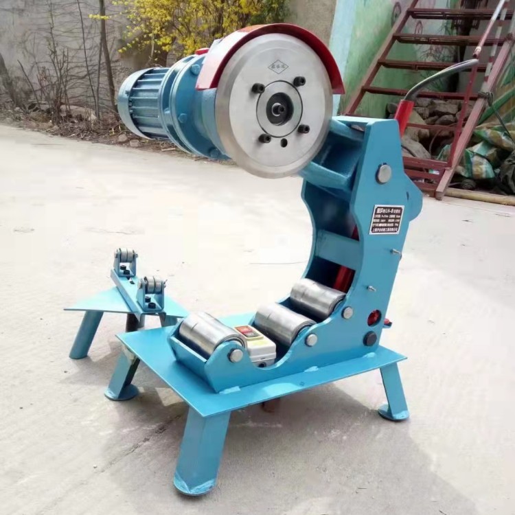 把切管机放置在水平的问题,并根据管子直径的大小调整支架的高低。如果管子重量太重,建议直接在地基上打铆钉,紧固住切管机,以防止在切割的过程中切管机移动。根据钢管的粗细,把钢管放置在切管机的不同滚轮上(100mm以及100mm一下的管子要放在切管机的超里面的两个滚轮上)缓慢下压油泵的手柄不要连续压手柄。压一下手柄,刀片向下大约前进0.5mm,让钢管旋转一圈,然后再压,当刀片进入钢管大约1/2多点的时候,就不需要再压了,让钢管自己旋转几圈后,钢管就自然断裂。
