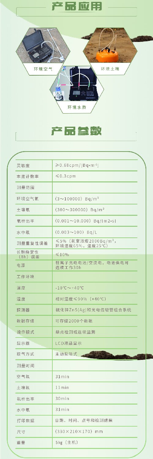 | 灵敏度 | ≥0.68cpm/[Bq•m-3] | |