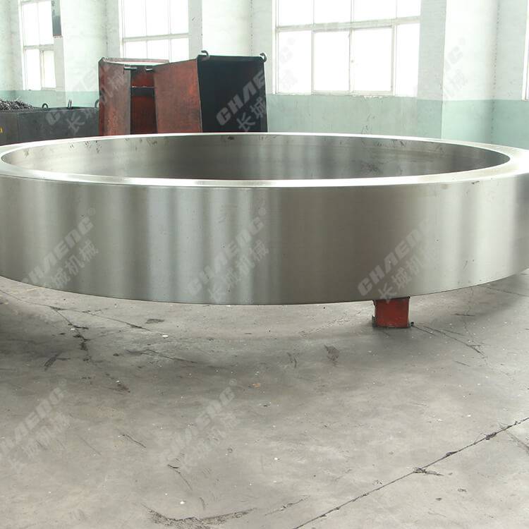 新乡长城是国内大型的大型铸造厂,在回转窑轮带加工时采用ZG45和ZG42CrMO材质,可保证轮带的强度以及韧性,从而更好的起到支撑的作用。经先进的双介质淬火工艺处理,各部分锻造均匀,具有淬火硬度高、韧性值高的特点,使该轮带具有良好的耐磨性能,能适应各种恶劣的工作环境。