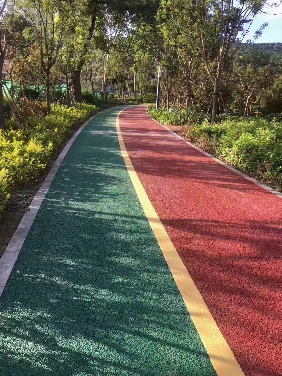 2.浇筑:在浇筑之前,路基必须先用水湿润。由于透水地坪拌合物比较干硬,将拌和好的透水地坪和好的透水地坪材料铺在路基上铺平即可。