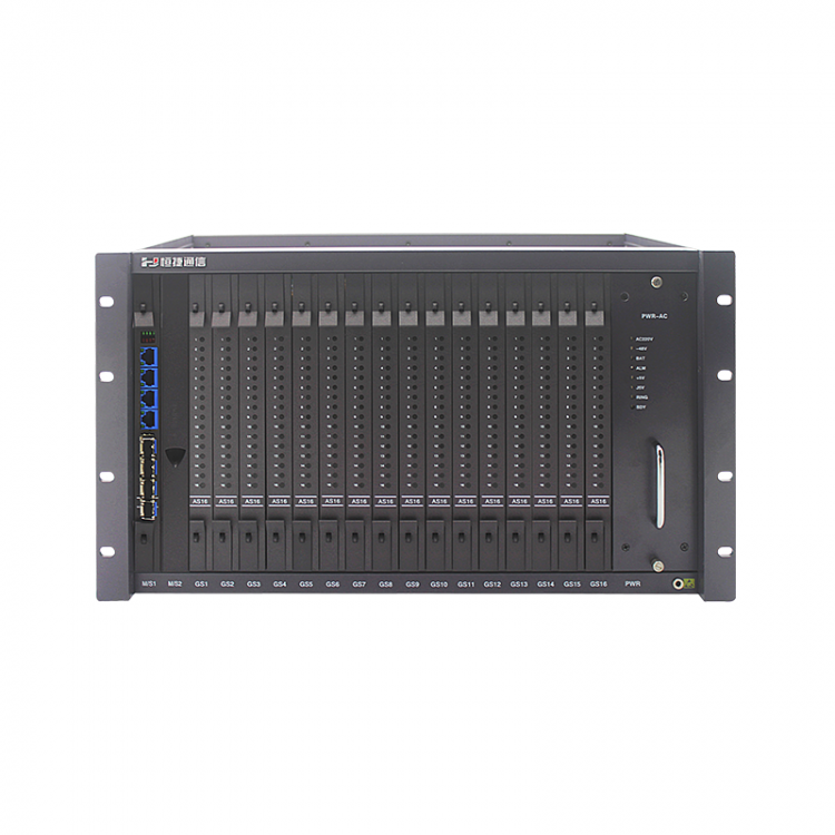 5、16个通用业务插槽,根据用户需求配置FXO/FXS/磁石/E&M/4线音频/E1/以太网RS232/RS422/RS485等 ;