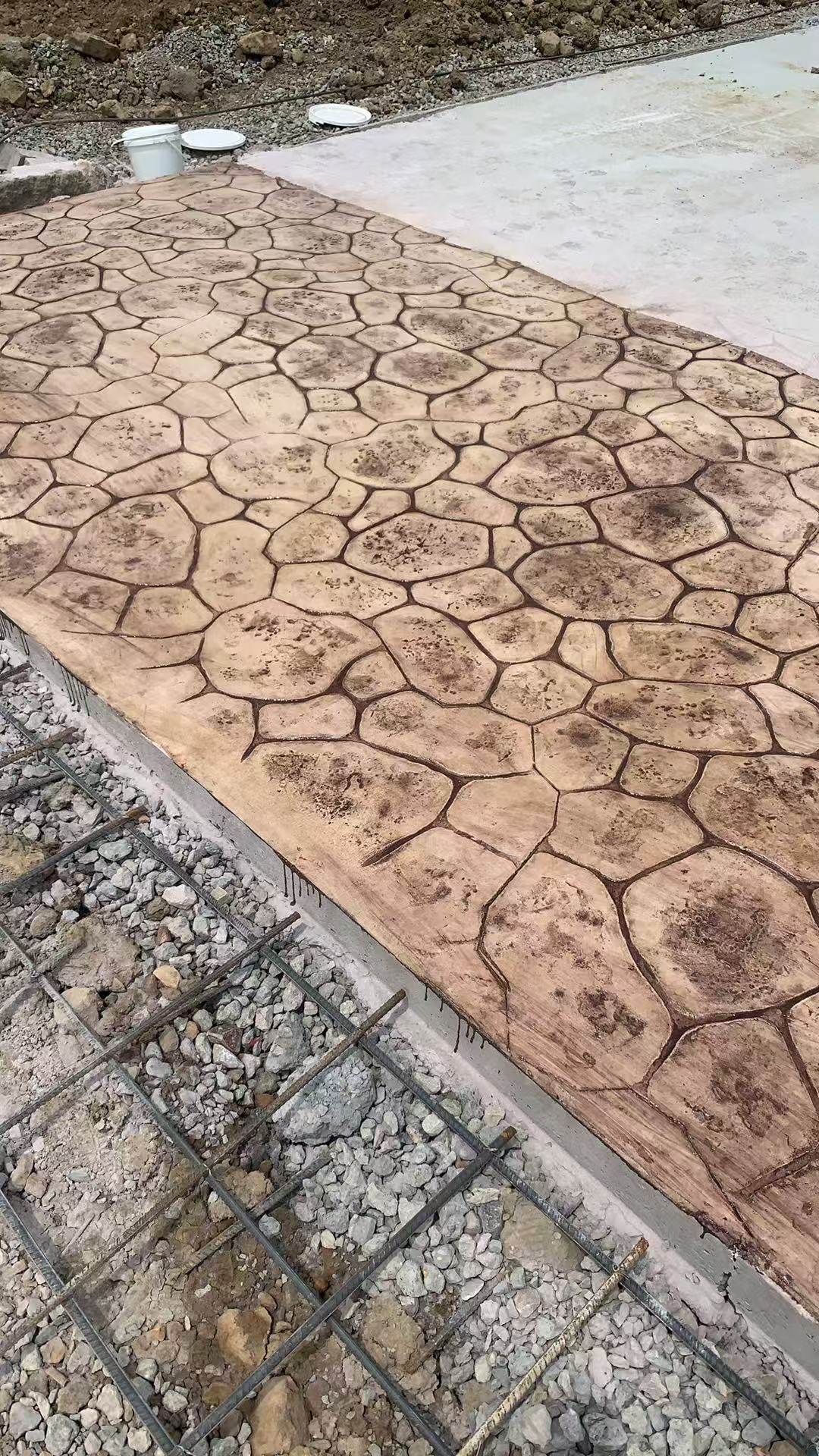 3.现浇彩色纹理与基层浑然一体,解决了常规铺装难以克服的表层松动和中空造成的易破裂现象。