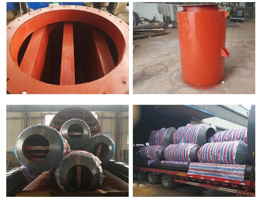 该锅炉风机消声器系列产品为阻抗声流型。本厂根据对发电厂各类风机运行现场噪声源进行实际测试所取得的濒特性资料来确定在哪些频谱范围内需要多大消声量作为设计吸声片结构及流体通道的主要依据, 锅炉风机消声器采用了具有较大吸声材料饰面的狭矩形通道,以增强吸收效果。我们知道,风机的噪声源在最大噪声级时,其频谱值往往不止一种,而对不同频谱带,对其消声量要求也不相同。为此本产品采用了对高、中频噪声起消声作用的阻式结构及对中、低频噪声起消声作用的抗式结构,同时在阻式通道中采用了高频及低频两种消声区,用以极大限度的增宽消声频带,以实现良好的消声效果。