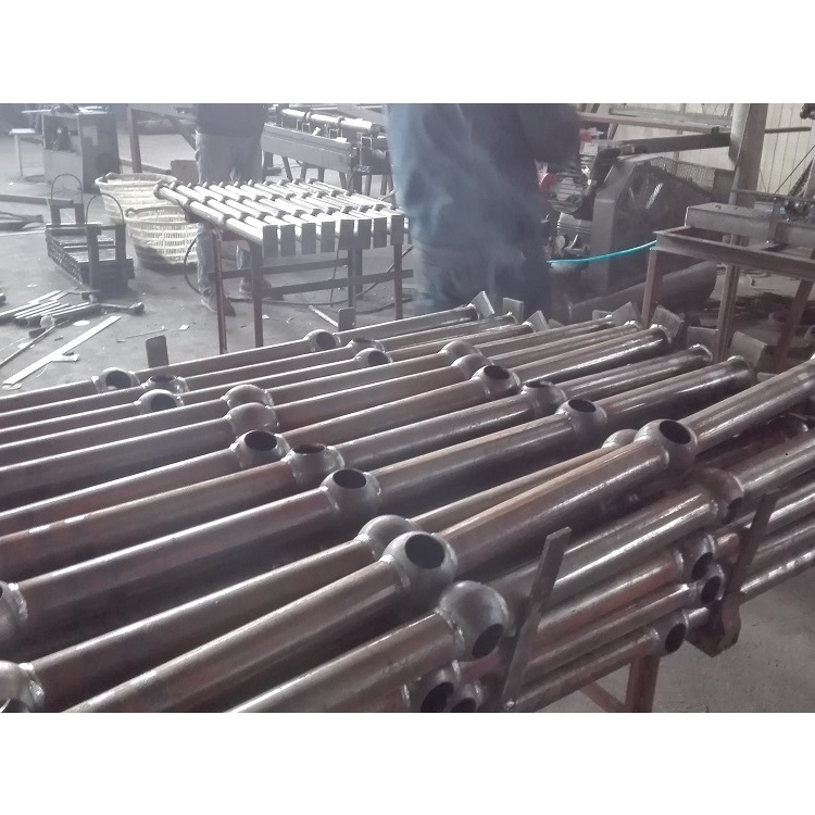 4)、穿栏杆管件于第一、第二根立柱,并使其超出第一根立柱约75mm.