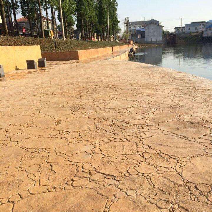 4.撒布脱模粉:在硬化材料初凝一定阶段,表面干燥无明显水份的情况下均匀撒布一层与硬化材料配套的脱模粉。