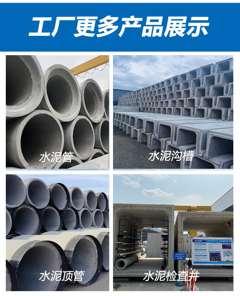 | 主营产品 | 混凝土水泥管、顶管、企口管、预制井等 | |