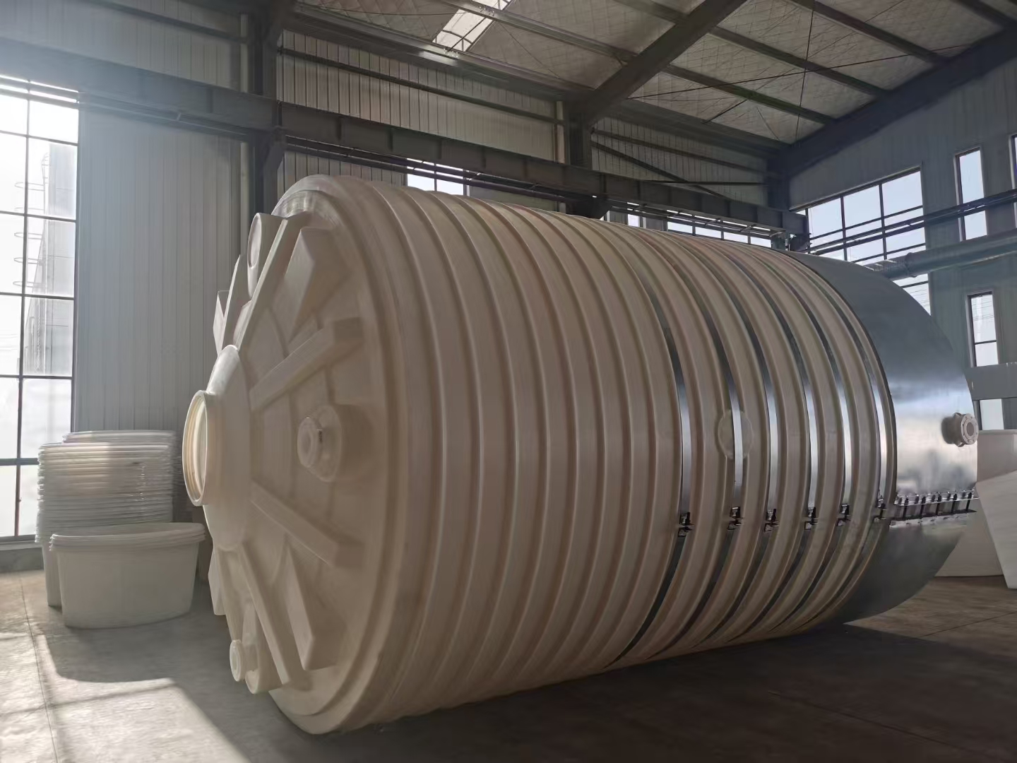 塑料容器公司所产的塑料水箱采用进口PE塑料原料和纯熟的滚塑工艺,整体加工一次成型,生产各种滚塑系列产品。主要产品有塑料PE蓄水箱、化工储罐、槽、加药箱、溶盐箱、食品周转桶、纺织印染布车、棉条桶、发酵缸、酒缸、公路隔离墩等等。并且可以根据客户的要求批量加工各种滚塑产品。