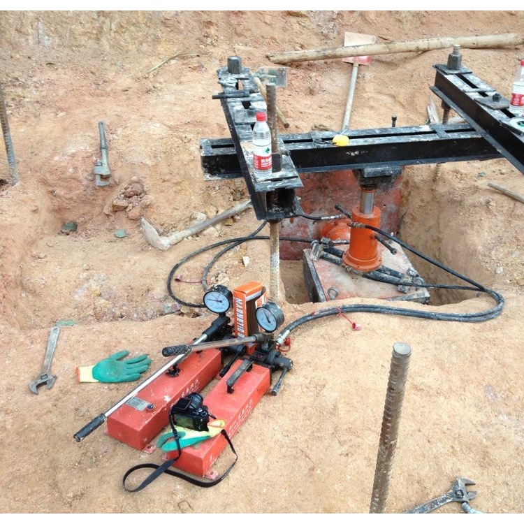 地锚4套,地锚压板2只,反力压板1只,50 cm×50cm×250mm剪切盒一套 ,50吨、80吨液压油缸各一只,手动油泵2台,高压油管4根,压力传感器二只,位移传感器2只,磁性表座2只,自动数据采集仪一台,滚珠盘1只,顶板2块,传力柱1支,等配套件一并配齐。