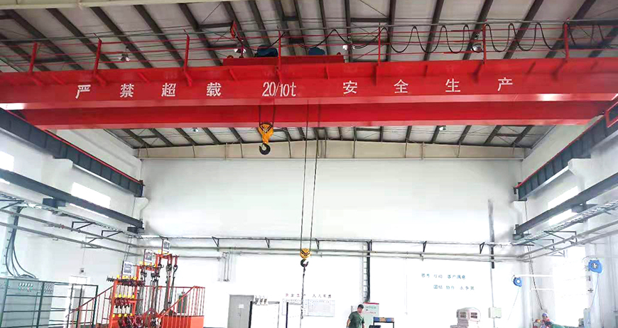 2、其起重量为5-80t,跨度为7.5-50m,其工作类型为轻级和中级,工作环境温度为-25-40℃,禁止在易燃、易爆、腐蚀性介质环境中使用。