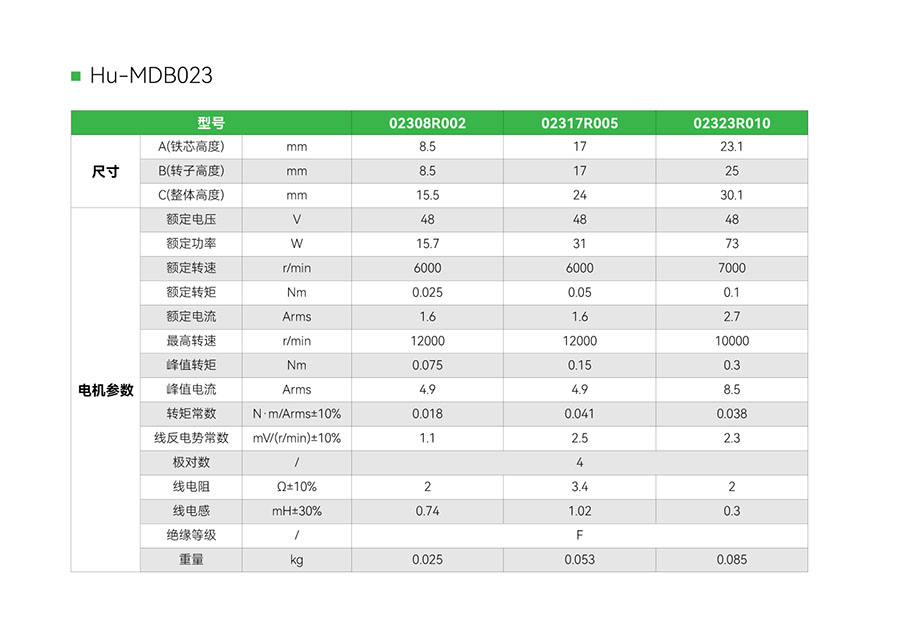 Hu-MDB023------电机直径:23.5mm;额定扭矩:0.025~0.1N.m