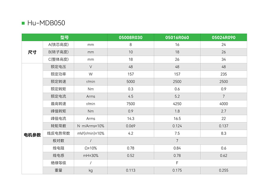 Hu-MDB050------电机直径:50mm;额定扭矩:0.3~0.9N.m