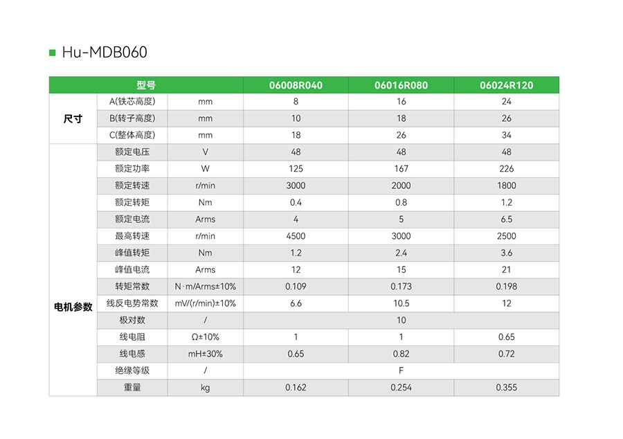 Hu-MDB060------电机直径:60mm;额定扭矩:0.4~1.2N.m