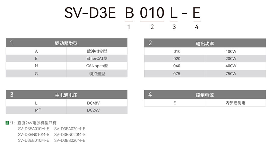 驱动器类型:A-脉冲指令型、B-Et herCAT总线型、N-CANOpen总线型