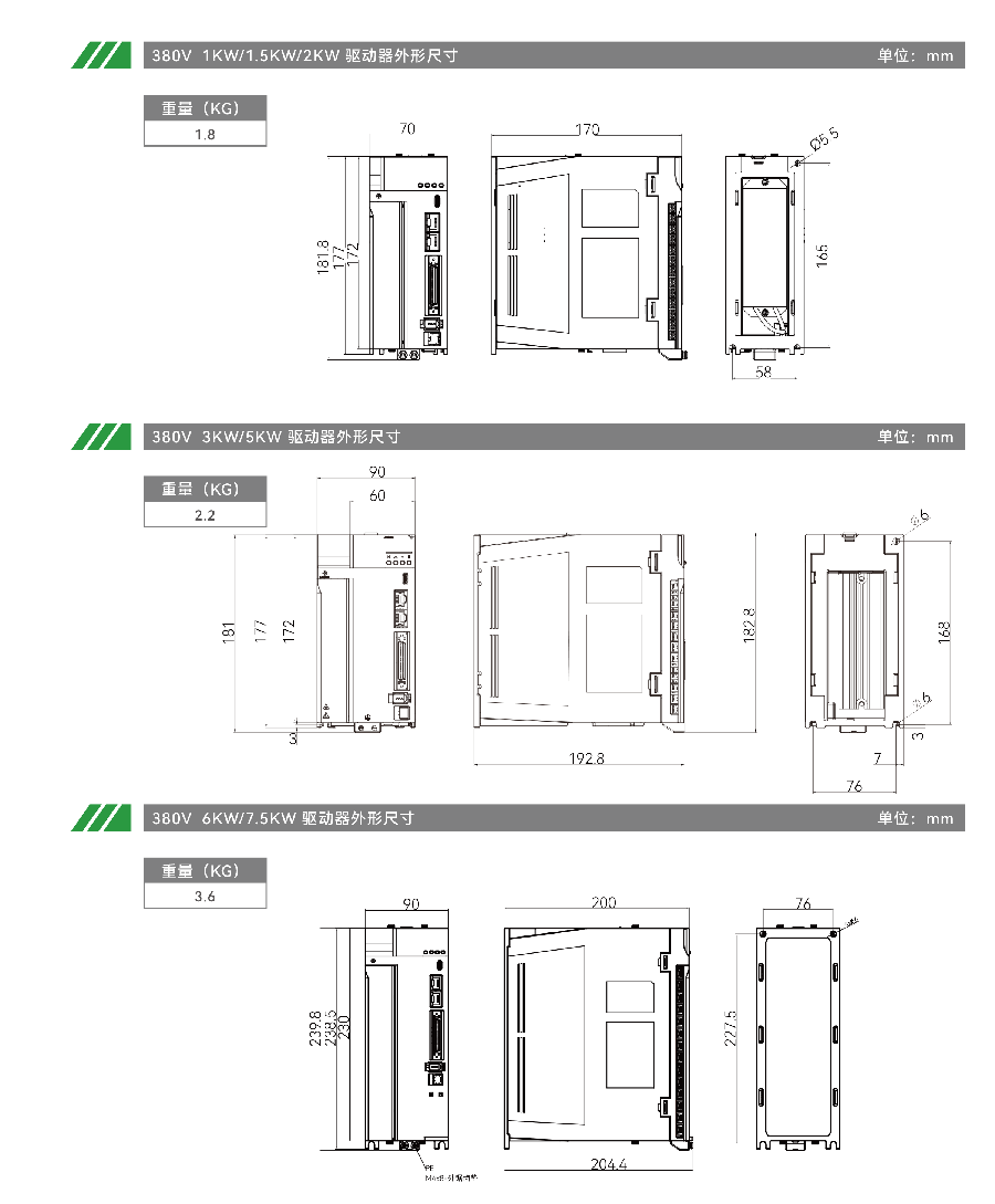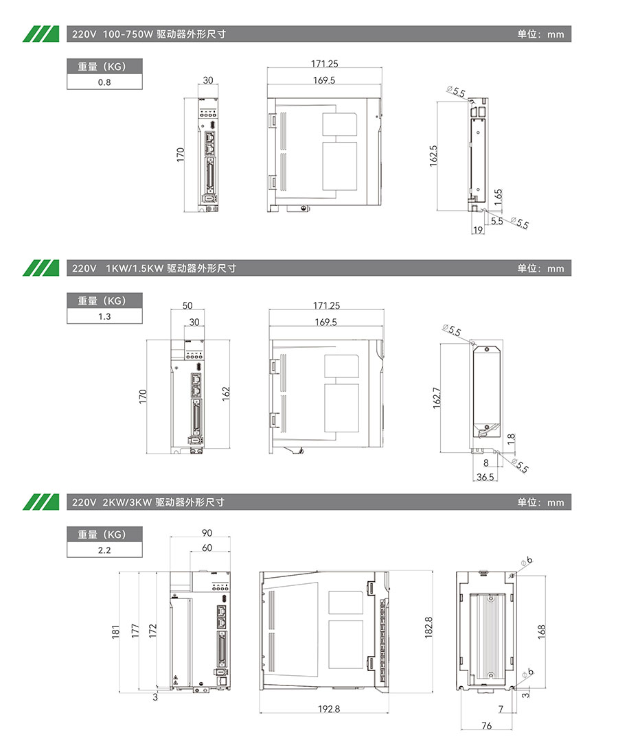 220V机型:100w-750w,动力电源AC单/三相220V