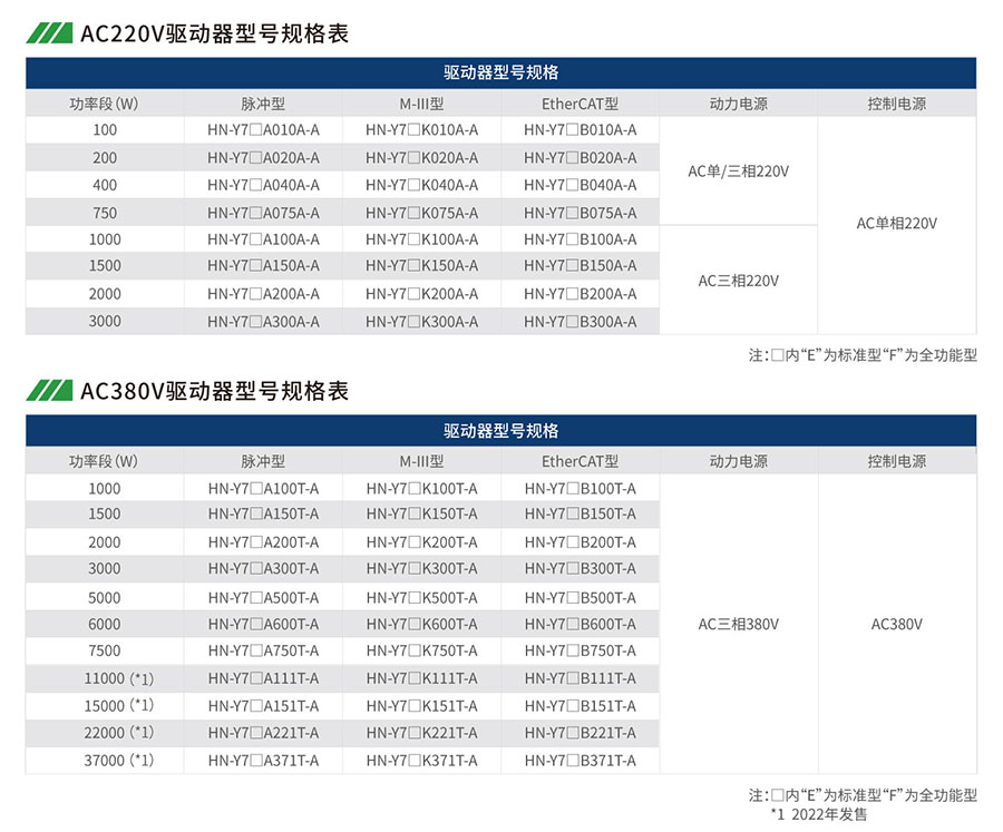 驱动器类型:A-脉冲指令型、B-E therCAT总线型、K-MIII总线型