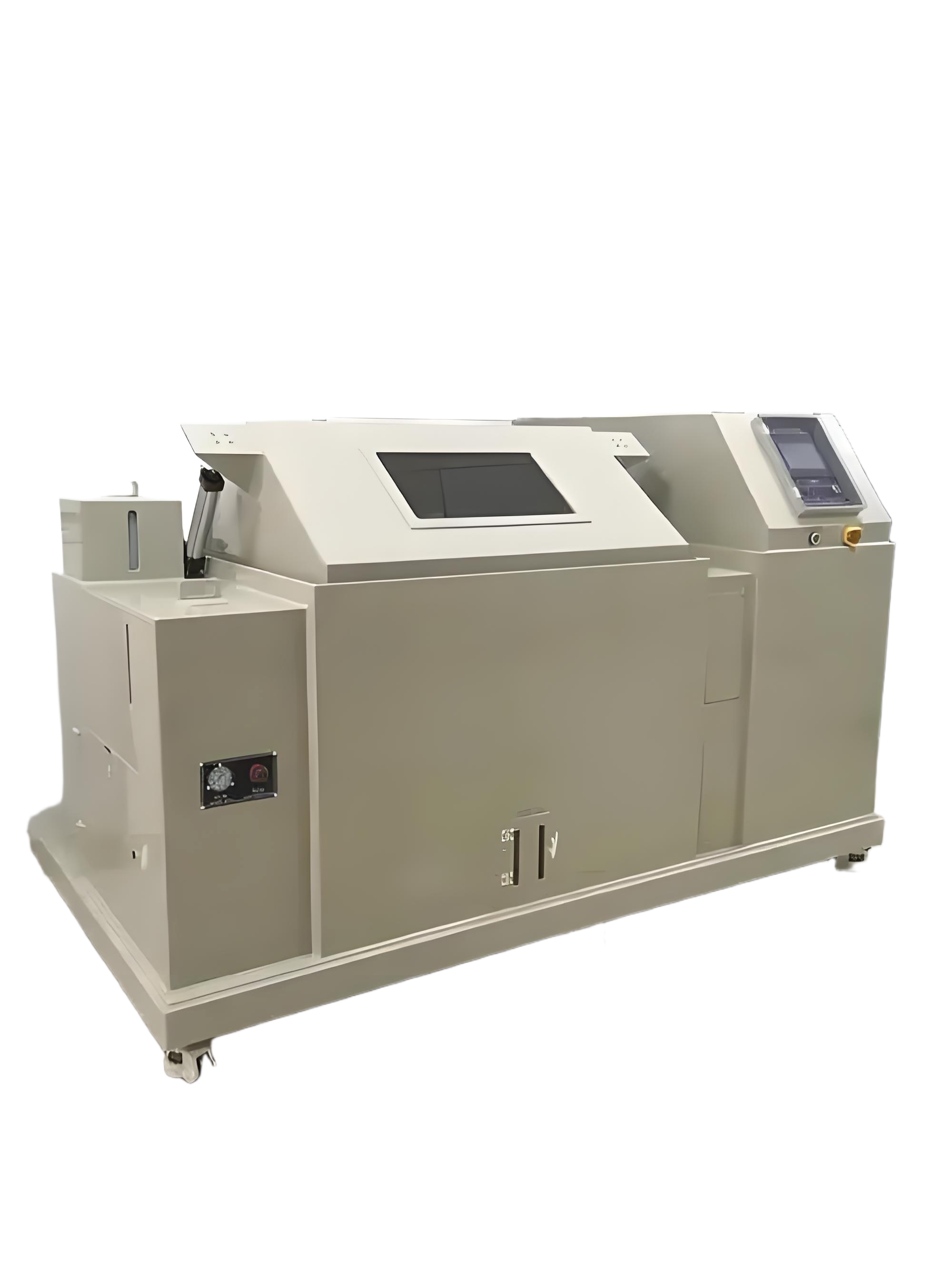 复合式盐雾试验箱又名循环盐雾腐蚀试验箱、盐干湿腐蚀试验箱,是加速腐蚀试验中接近空隙的自然状况,以自然环境中较常遇见之状况加以模拟,以数倍于 自然环境之严苛条件加以自合测试,如盐雾、干燥、湿润、常温静置、喷淋等环境加以自合,可任意顺序或单独执行测试。