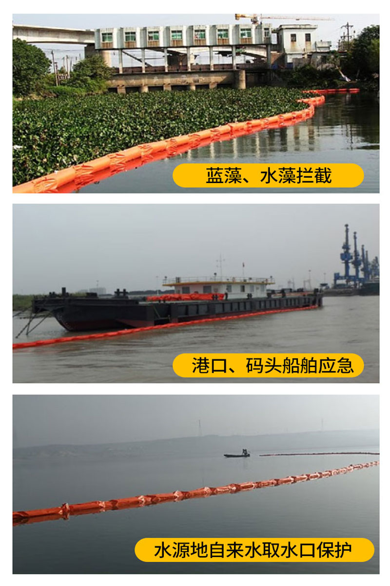 PVC围油栏 拦油带拦污带 河道治理围油栏围油栏的储存:可放在岸上船上。但下水再回收上来容易损伤围油栏