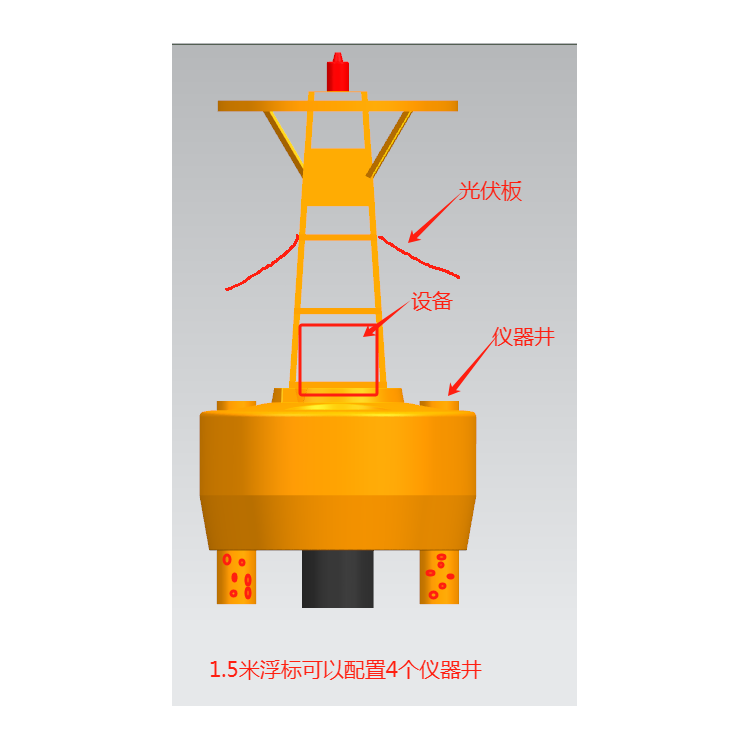 浮标采用工艺一体成型,材质LLDPE聚乙烯外壳,内部发泡,部钢架为304不锈钢材质,所使用的材料均是防腐材质;