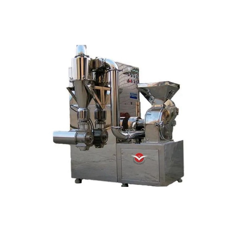 本粉碎机组的粉碎机、物料收集箱和吸尘器.全部采用不锈钢材料制作。符合药品生产的”GMP的要求。